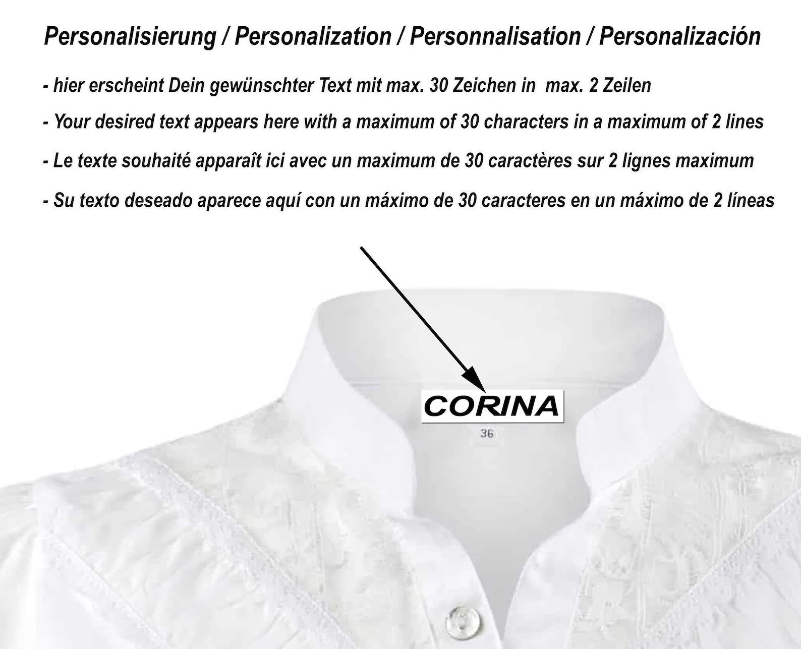 Damen Dirndl Bluse weiss / auf Wunsch personalisiert / Trachtenhans–Tradition trifft auf zeitloses Design