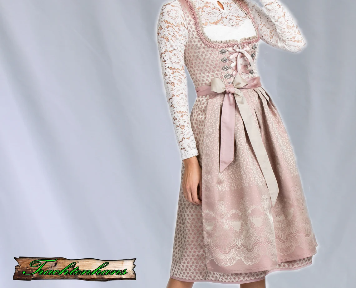 Ein Dirndl, das zum Verlieben ist: Die Dirndl in altrosa Es gibt kaum ein Kleidungsstück, das so sehr für Tradition und Heimatverbundenheit steht wie das Dirndl. Doch wer sagt denn, dass man dabei auf Innovation und Moderne verzichten muss? Das beweist die Dirndl in altrosa aus dem Hause Trachtenhans. Das Besondere an diesem Dirndl ist der gewagte Einsatz von Metallic-Akzenten.