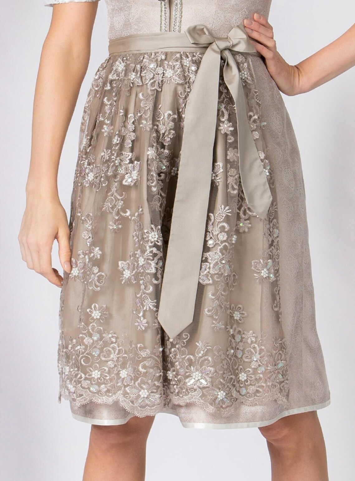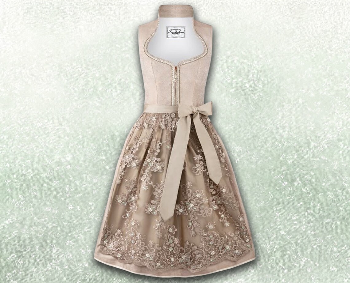 Exquisites Dirndl in taupe – beige für Damen / qualitativ hochwertiges Dirndlkleid /auf Wunsch kostenlos personalisiert „Angefertig für ..“
