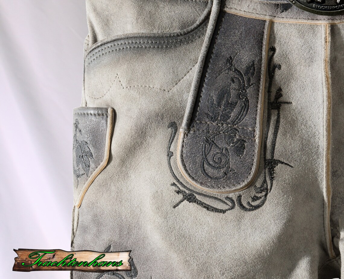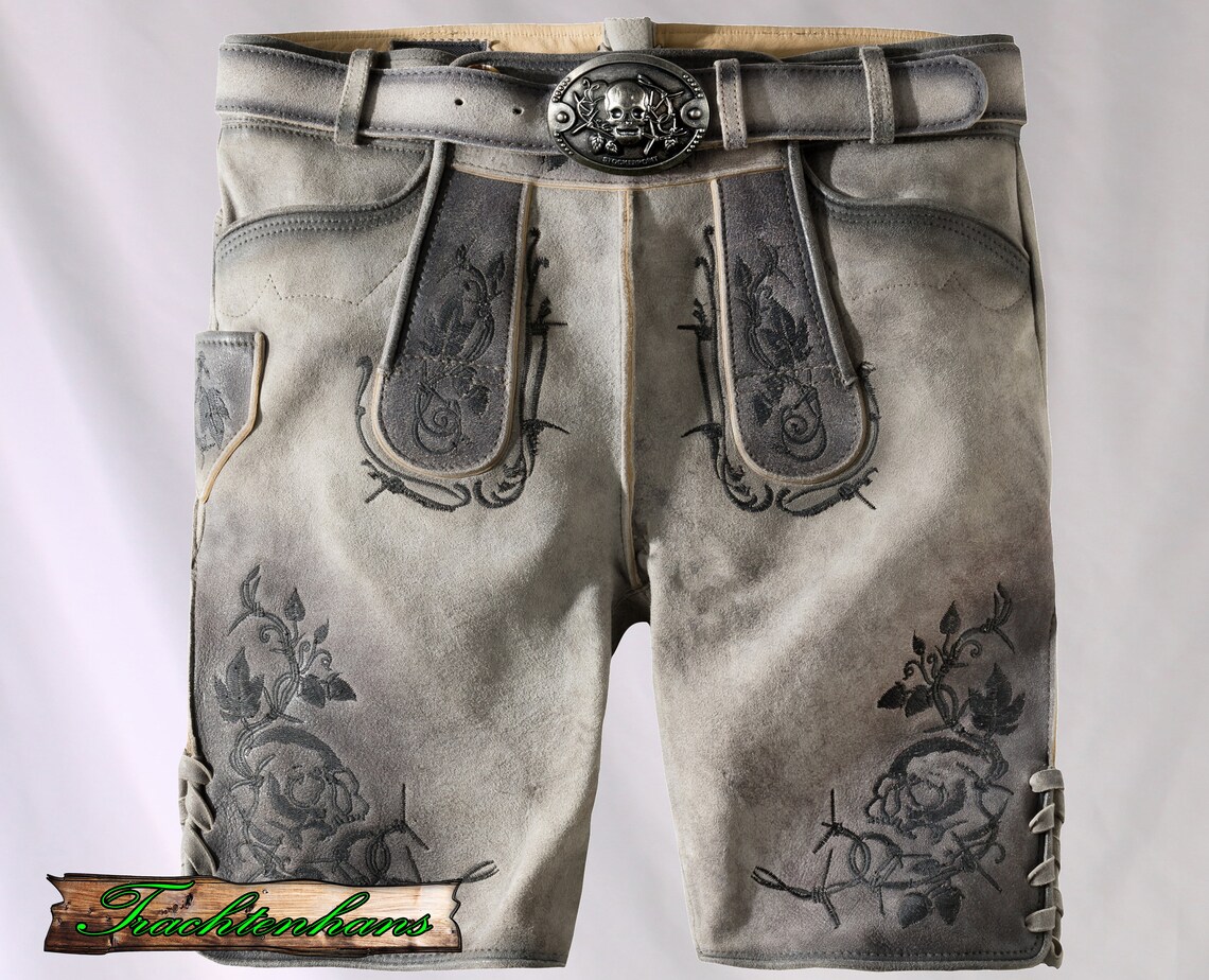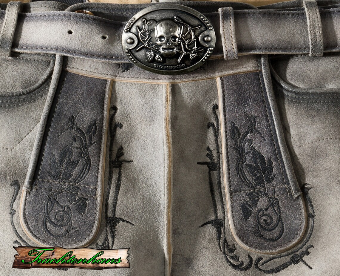 Die Lederhose präsentiert sich aus hochwertigem, gegerbtem Wildbock-Leder in authentischer Hirschoptik, was ihr einen charmanten Vintage-Look verleiht. Die auffällige Stickerei setzt markante Akzente und zieht alle Blicke auf sich. Die einzigartige Struktur des Leders mit antiken Farbverläufen verleiht jedem Modell eine unverwechselbare Note. Dank der Schnürung an der Rückseite des Bundes kann die Hose individuell angepasst werden. Jede Hose wird mit einem hochwertigen Ledergürtel und einer passenden Schließe geliefert, um das Gesamtbild abzurunden.