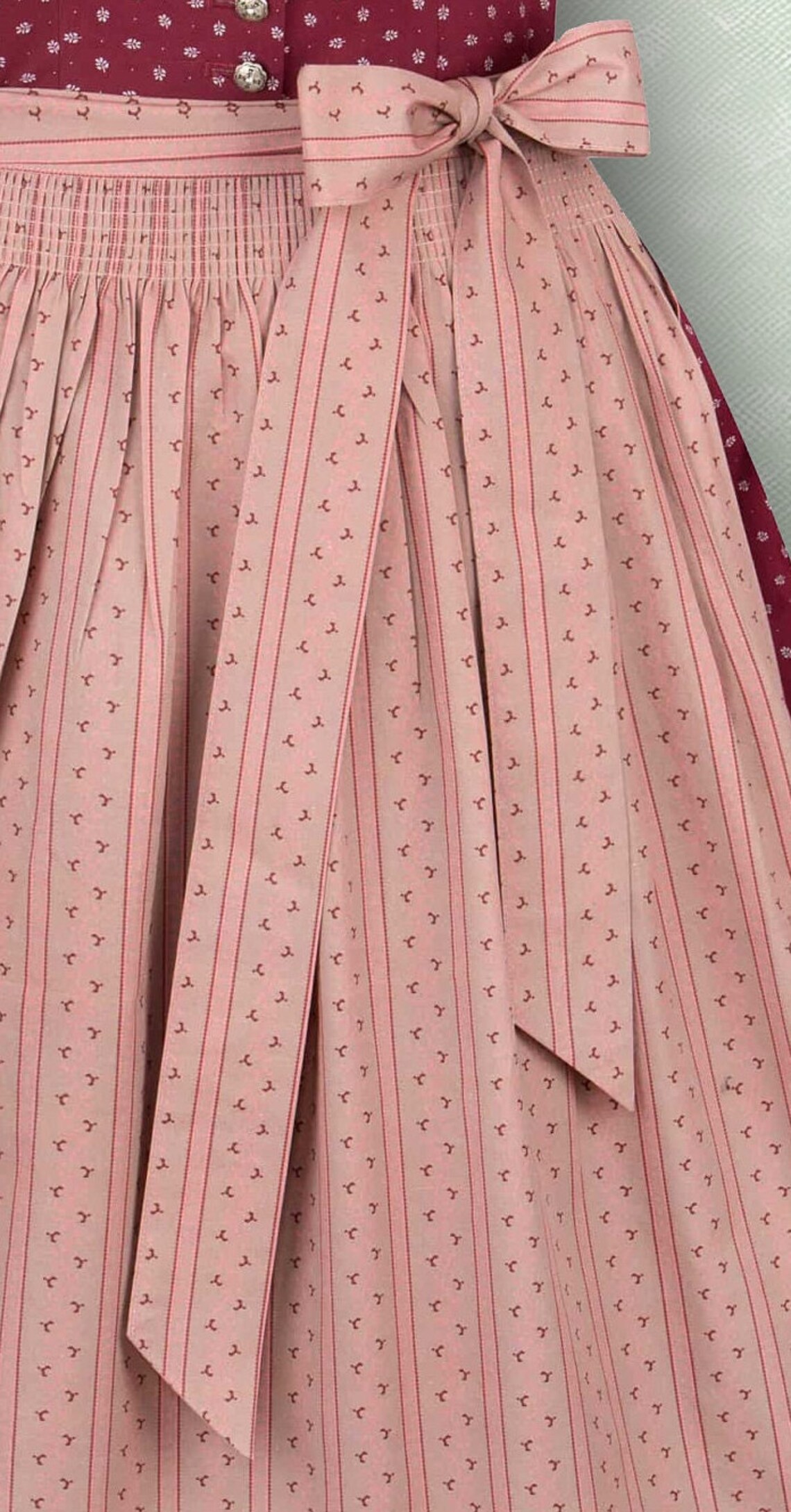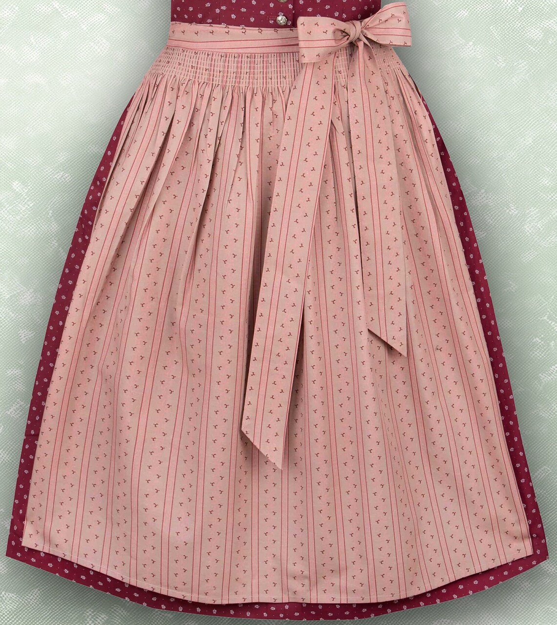 Dirndl bordeaux begeistert durch den hochgeschlossenen Schnitt und ist mit liebevollen Details versehen. Klassisch zurückhaltend und trotzdem edel, so verzaubert das Dirndl mit pflegeleichter Baumwolle in floralem Allover.