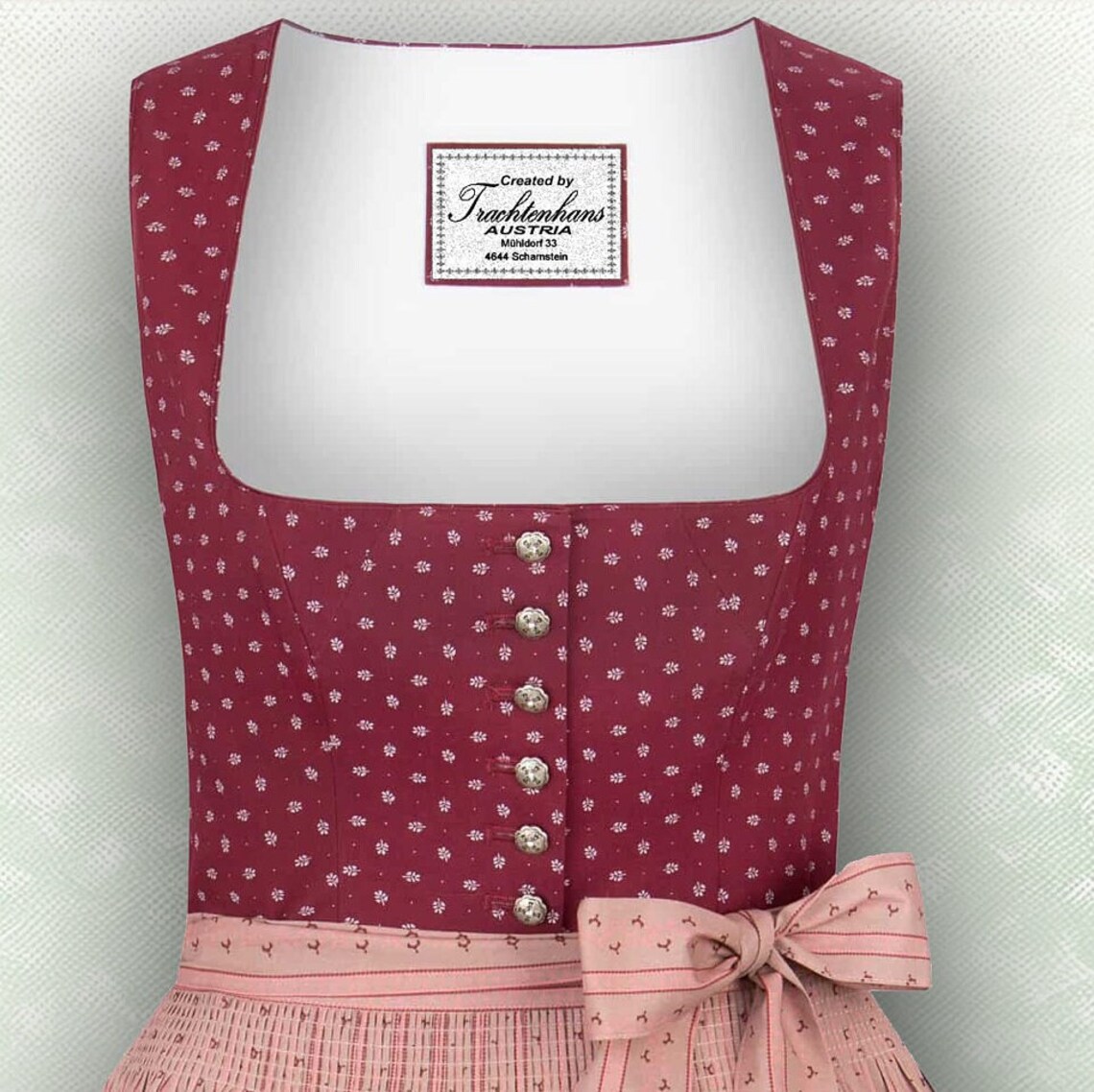 Dirndl bordeaux 100% Baumwolle-Klassisch zurückhaltend und trotzdem edel / auf Wunsch personalisiert / von Trachtenhans
