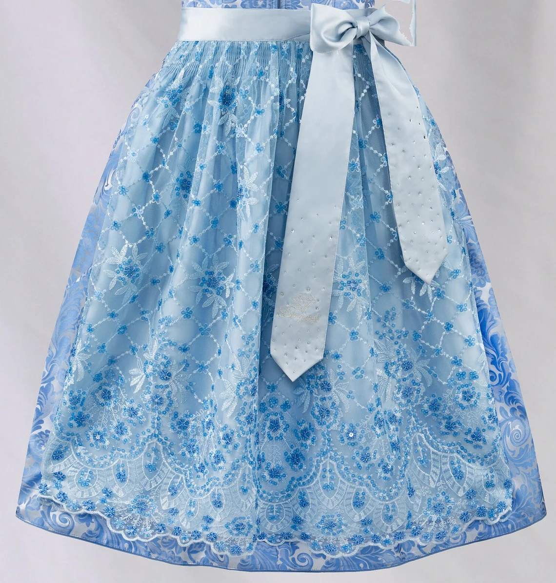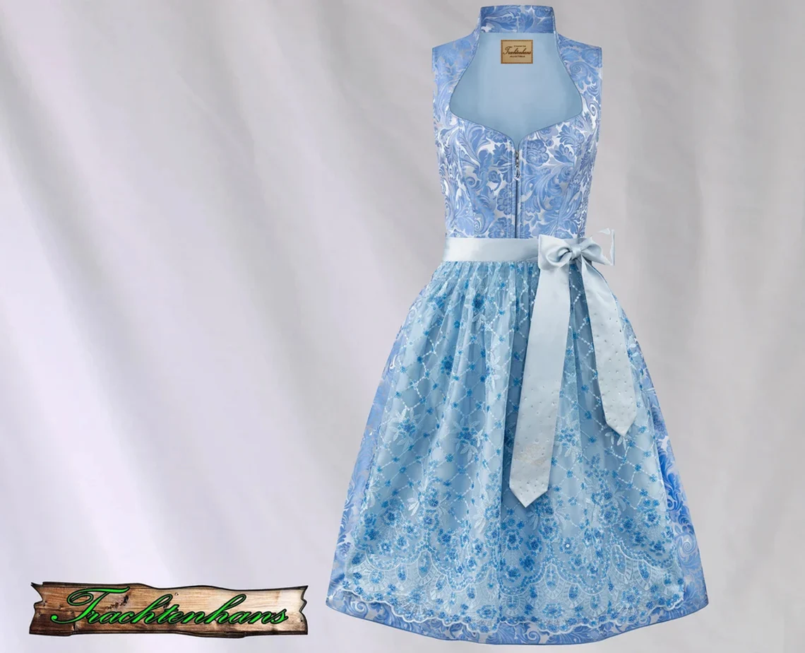 Dirndl für Damen in der Farbe blue lagune. Nur die besten Materialien werden in einem luxuriösen Design zu dieser einzigartigen Livestyle Kollektion veredelt. Der feminine Herzausschnitt mit Schalkragen zaubert ein grandioses Dekolleté und macht das Design zu etwas ganz Besonderem. Das Dirndl ist mit oder ohne Bluse zu tragen und zieht alle Blicke auf sich. Trendige Details und verspielte Kristall-Applikationen prägen die hochwertigen Dirndl. Tauchen Sie ein in unsere neuen Trachtenwelten und finden Sie Ihr pures Glück…