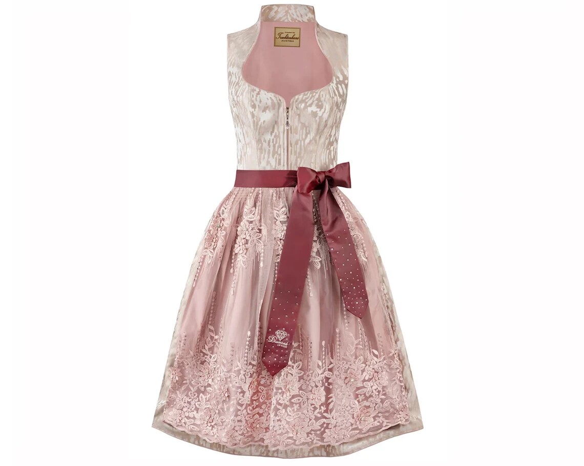 Dirndl für Damen aus der exklusiven Kollektion in der Farbe sunset. Nur die besten Materialien werden in einem luxuriösen Design zu dieser einzigartigen Livestyle Kollektion veredelt. Der feminine Herzausschnitt mit Schalkragen zaubert ein grandioses Dekolleté und macht das Design zu etwas ganz Besonderem. Das Dirndl ist mit oder ohne Bluse zu tragen und zieht alle Blicke auf sich. Trendige Details und verspielte Kristall-Applikationen prägen die hochwertigen Dirndl. Tauchen Sie ein in unsere neuen Trachtenwelten und finden Sie Ihr pures Glück…