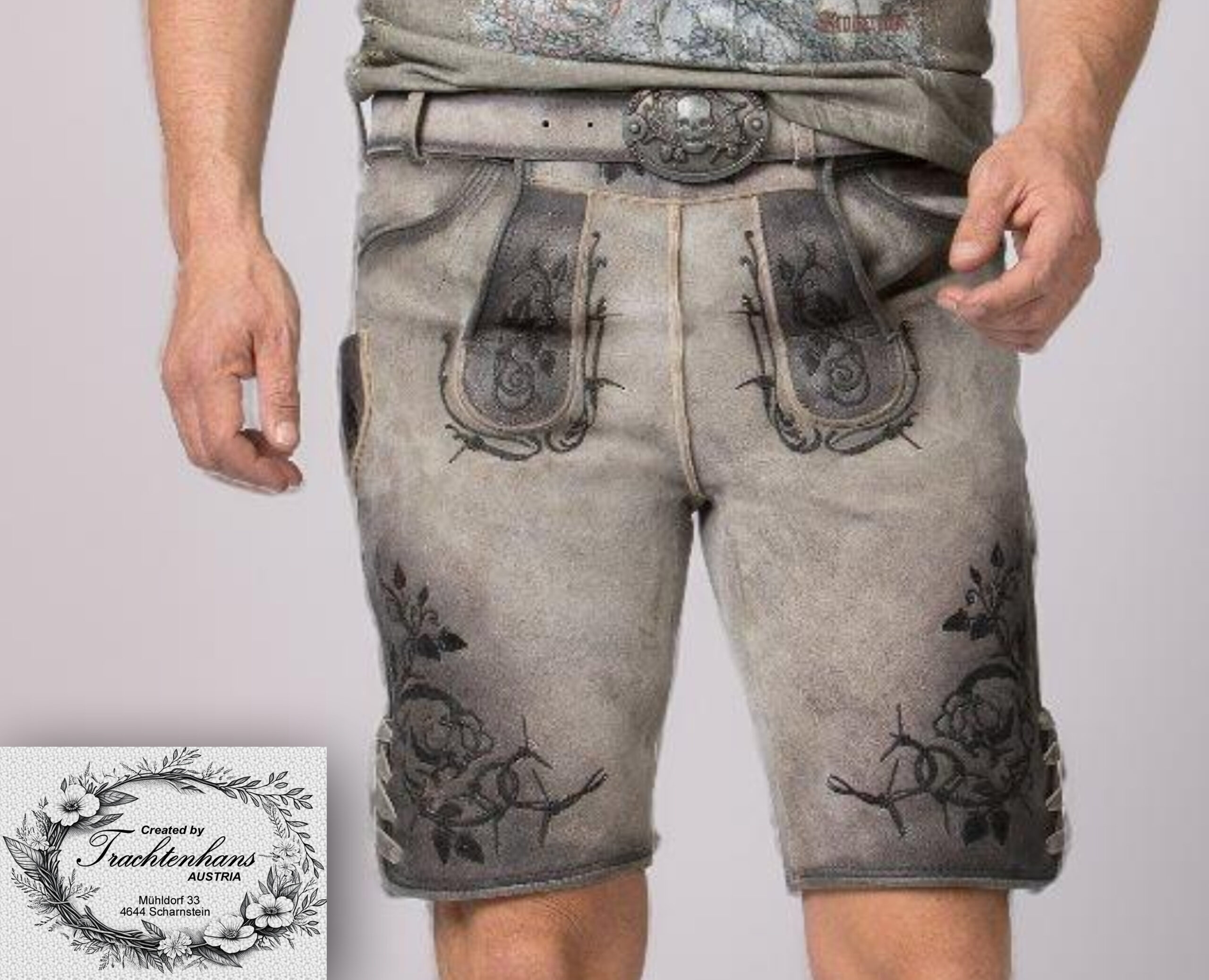 Die Lederhose präsentiert sich aus hochwertigem, gegerbtem Wildbock-Leder in authentischer Hirschoptik, was ihr einen charmanten Vintage-Look verleiht. Die auffällige Stickerei setzt markante Akzente und zieht alle Blicke auf sich. Die einzigartige Struktur des Leders mit antiken Farbverläufen verleiht jedem Modell eine unverwechselbare Note. Dank der Schnürung an der Rückseite des Bundes kann die Hose individuell angepasst werden. Jede Hose wird mit einem hochwertigen Ledergürtel und einer passenden Schließe geliefert, um das Gesamtbild abzurunden.